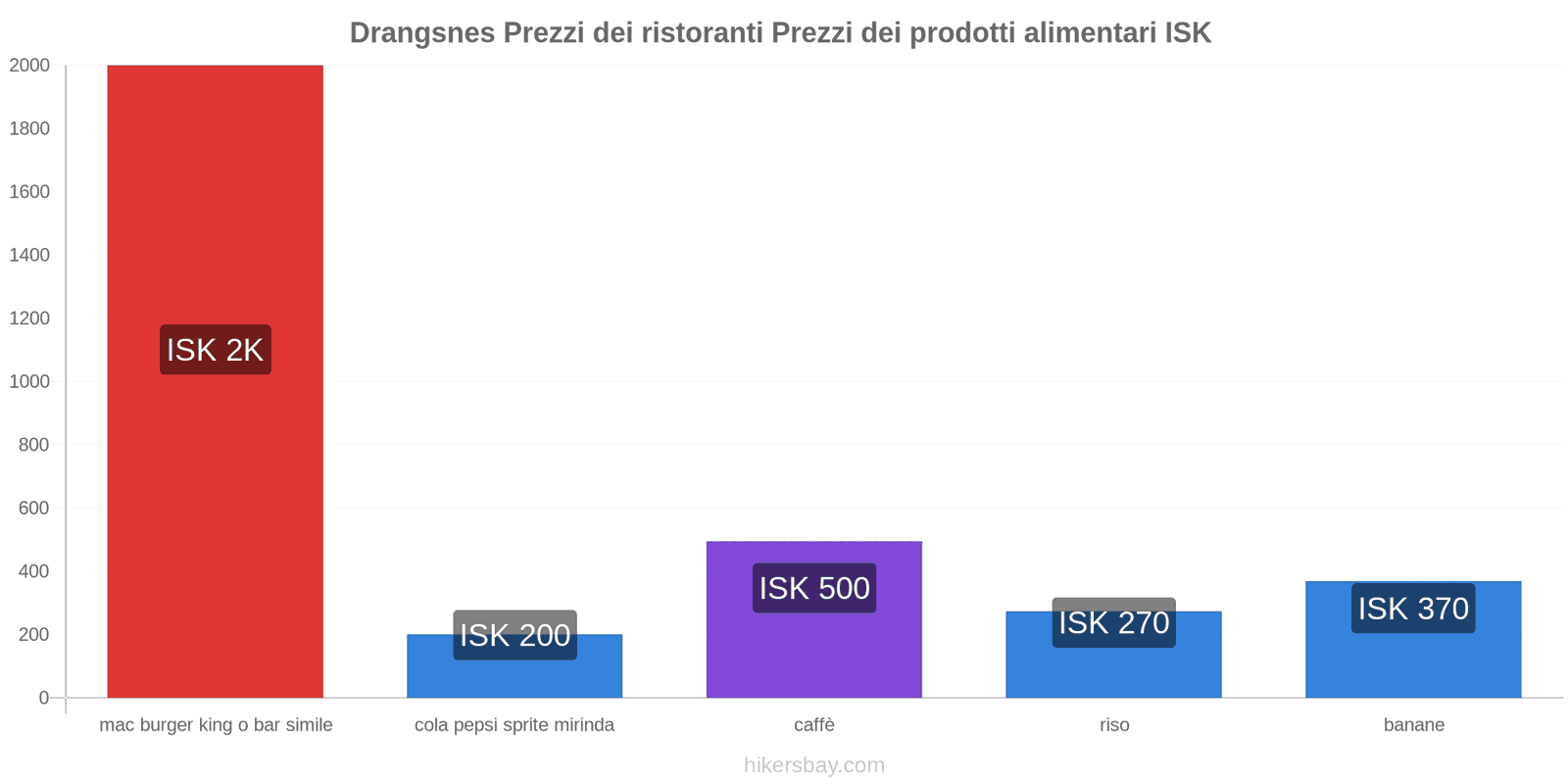 Si può mangiare a buon mercato nei ristoranti a Drangsnes? Quali sono i prezzi nei pub a prezzi accessibili in Drangsnes? Quanto dovrò spendere in un giorno se mangio solo in fast food a Drangsnes?